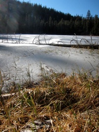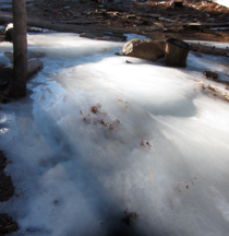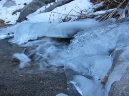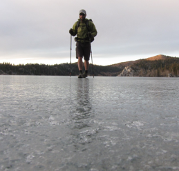 Typical frozen water sources. Much time was spent walking around lake shores looking for weaknesses in the ice.