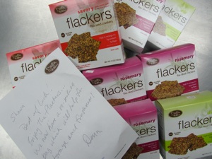 Lunch is generally a mix of cheese, pepperoni or meat stick with some crackers and candy bars. Crackers, pretzels and chips are great because they usually have around 150 cal/oz and are a great way to replace any lost salt in your diet. I’ll be carrying some Flackers from Dr in the Kitchen.