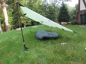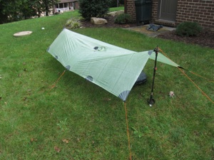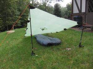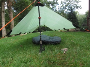 The ‘Jack of all Trades’. A cuben poncho tarp by Mountain Laurel Designs. Shown here in a-frame configuration.