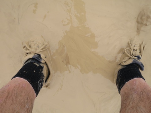 There's a pair of OBOZ under there somewhere! Our 3mi water ford across Badwater Basin quickly turned into an extended 2mi mud slog.