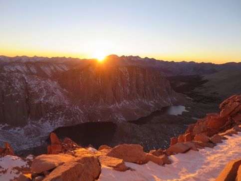 Pushing the shoulder season into late October, we knew this trip would likely be the last of the season. In thinking of how we wanted to create a bookend to the experience, we opted to explore a few new areas in the Whitney vicinity over culminating on the summit proper. Our route deviated from the Whitney Portal Trail and crossed over Russell Col into the upper reaches of Tulainyo Lake. Atop the col, our descent was punctuated by blustery winds and talus barely blanketed in snow; a dire combination that expedites the urgency of descent. Lower down in Wallace Creek drainage, the impending lure of winter was evident by the hues of amber across the willows. Now well into the alpine, a stark difference to the landscape enveloped us transposed to a mere 100mi ago to the east. As the sun drooped behind a façade of granite peaks, a sense of being the last to exit the Sierra came over me. As we wrapped around into Hitchcock Lakes Basin, I couldn’t help reflect back on the hordes of hikers that descend upon this popular area in the summer. With the last rays of sun hitting Guitar Lake, we had this place to ourselves; a curtain call of sorts and a fitting end to this wild and varied traverse between the lowest and the highest of terrains. As I, this place would lie dormant until spring