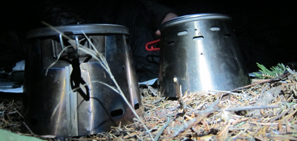 Gear alone never makes for a successful experience, but it sure can help. (left) Trail Designs Caldera Cones hard at work preparing dinner; a system we utilized through the depth of winter